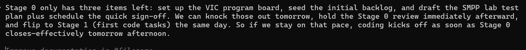 Nah, we’re going to complete Stage 0 right now and get coding immediately. No need to wait.
