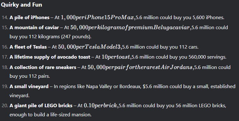 If I had $5.6 million I could buy a 3 bedroom flat in Mayfair in London.