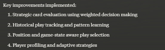 The good news was the code mostly worked. The bad - while it talked convincingly about improving the quality of the bidding logic in Estimation Whist, I remain unconvinced it is significantly better. Different, yes. More complex, yes. Better, marginal at best.