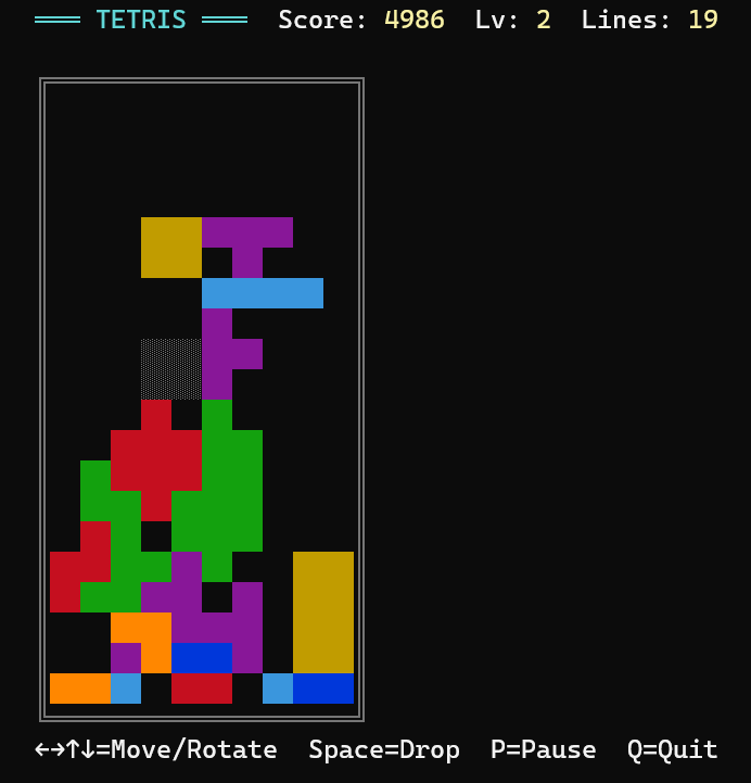 This weekend I continued to build out mdhavers (my new not-entirely-serious programming language). Over the weekend Claude extended the LLVM backend, and added over 5,000 unit tests. Last week I could play tetris using the interpreter; now I can compile to a native binary and play in a terminal.
