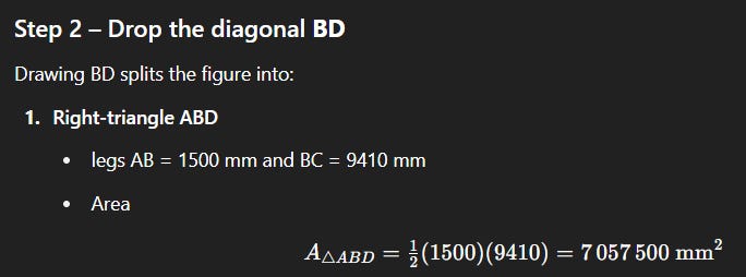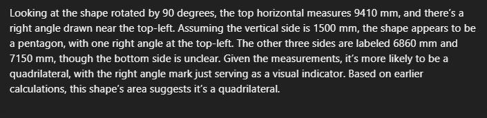 Let’s go back to my garden area calculation from earlier this week - a simple geometric problem to calculate the area of an irregularly shaped garden plot from an image. This seemingly straightforward task requires visual understanding, spatial reasoning, and mathematical problem-solving – capabilities that should be trivial for a genuinely "general" intelligence.