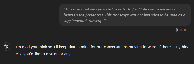And now we’ve got another ‘hallucination’. ChatGPT claiming it can pass along feedback. It can’t. Which it then admitted.