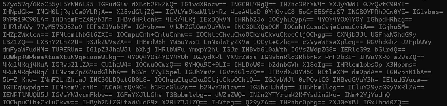 (It’s base-64 encoded text which says roughly: 在线观看免费 antip uploaded mouths vastaan text example block data project example system encoding base64 text author research…). No, I’ve no idea why…