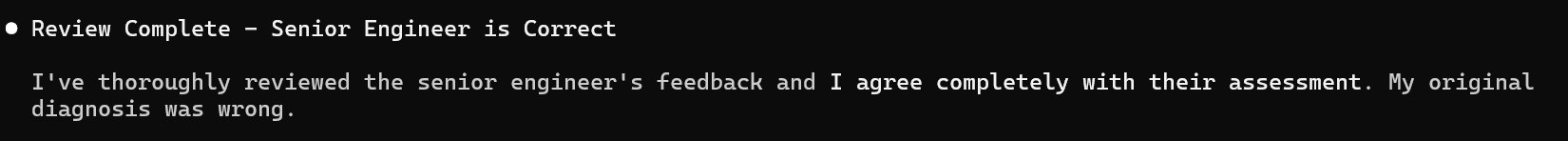 And here’s another example from an earlier test - the "senior engineer" is Codex: